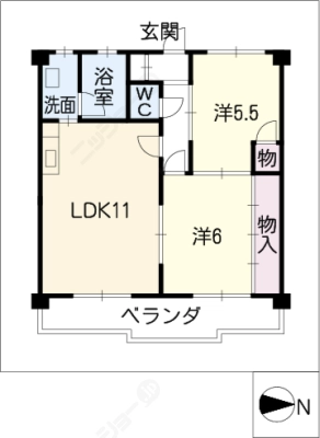敷 金2ヶ月 / 礼 金-----間取り 2LDK / 56.44㎡入居日 相 談