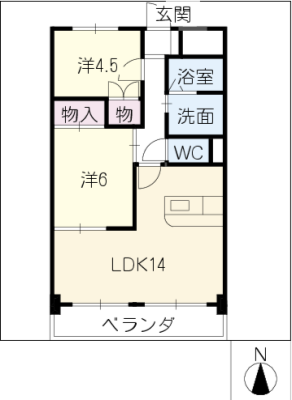 保証金1.00ヶ月 / 償 却10割間取り 2LDK / 54.45入居日 即 可