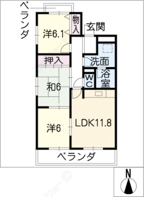 敷 金1ヶ月 / 礼 金-----間取り 3DK / 64.40㎡入居日 相 談