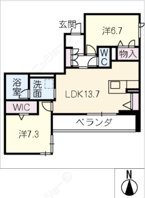 保証金2.00ヶ月 / 礼 金1.00ヶ月間取り 2LDK / 71.26入居日 2026年6月30日頃