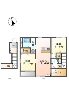 保証金----- / 礼 金1ヶ月間取り 2LDK / 59.55㎡入居日 2026年4月上旬