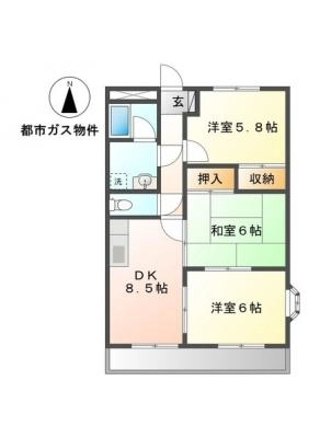 敷 金80,000 / 礼 金-----間取り 3DK / 57.75入居日 2026年2月中旬