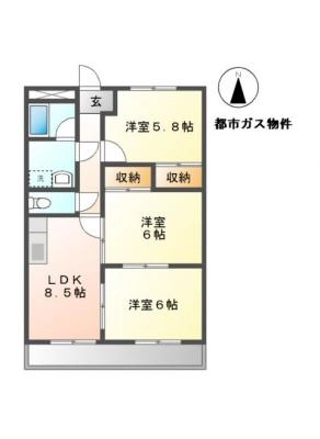 敷 金80,000 / 礼 金-----間取り 3DK / 57.75入居日 2026年2月中旬