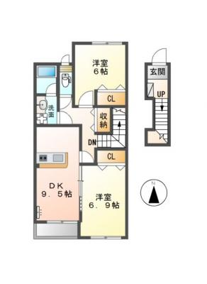 保証金1ヶ月 / 償 却10割間取り 2DK / 38.80入居日 即 可