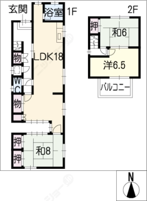 保証金2ヶ月 / 礼 金-----間取り 2DK / 45.00㎡入居日 即 可