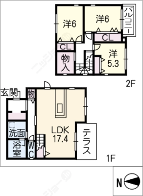 2階61,500円 / 共益費等 4,100円