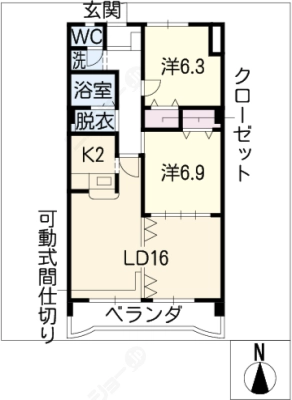 保証金1ヶ月 / 償 却10割間取り 2LDK / 66.00入居日 即 可