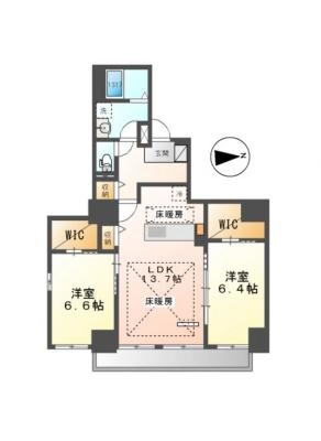 敷 金2.00ヶ月 / 礼 金1.00ヶ月間取り 2LDK / 67.70入居日 即 可