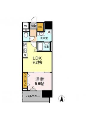 敷 金1.00ヶ月 / 礼 金-----間取り 1K / 23.04㎡入居日 即 可