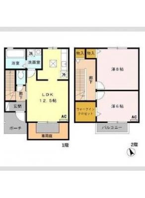 保証金----- / 礼 金61,500間取り 2DK / 45.39㎡入居日 2026年3月下旬