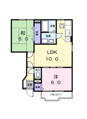 保証金1ヶ月 / 償 却10割間取り 2DK / 46.98入居日 即 可