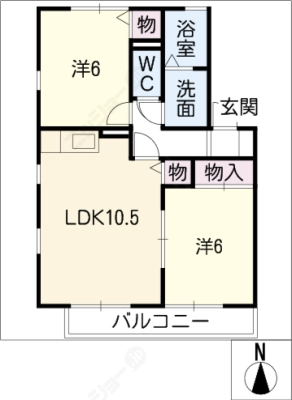 敷 金1.5ヶ月 / 敷 引1.5ヶ月間取り 2LDK / 61.05入居日 2026年3月中旬