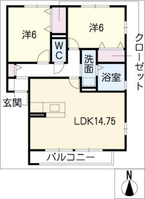 敷 金1.5ヶ月 / 敷 引1.5ヶ月間取り 2LDK / 58.50入居日 2026年2月中旬