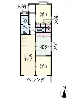 敷 金2.00ヶ月 / 償 却2.00ヶ月間取り 3LDK / 69.61入居日 即 可