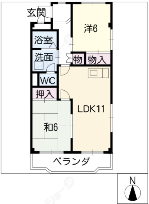 敷 金1.5ヶ月 / 敷 引1.5ヶ月間取り 2LDK / 61.05入居日 2026年3月中旬