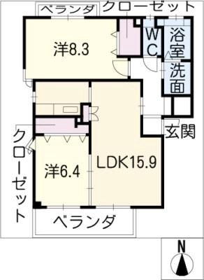 敷 金1ヶ月 / 礼 金1ヶ月間取り 2LDK / 61.97㎡入居日 相 談