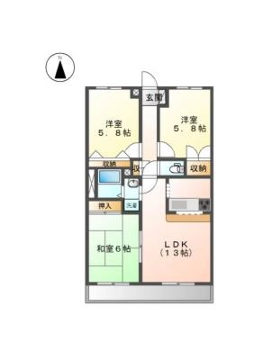 保証金2ヶ月 / 償 却10割間取り 3LDK / 57.75入居日 相 談