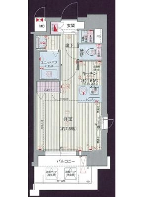 敷 金1.00ヶ月 / 礼 金-----間取り 1K / 24.28㎡入居日 即 可