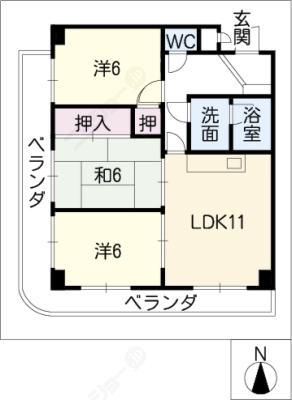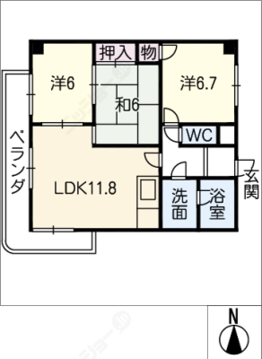 敷 金1ヶ月 / 礼 金1ヶ月間取り 2LDK / 69.51㎡入居日 即 可