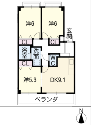 保証金95,000 / 償 却5割間取り 3DK / 57.78入居日 即 可