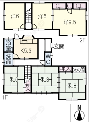 敷 金2ヶ月 / 償 却5割間取り 6K / 105.39入居日 即 可