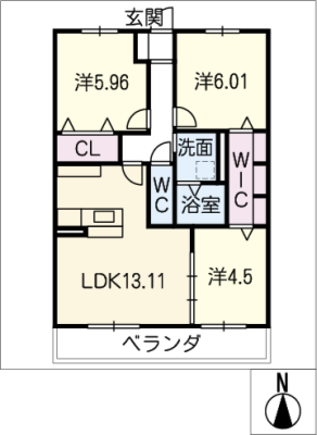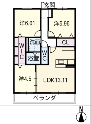 保証金1.00ヶ月 / 償 却1.00ヶ月間取り 3LDK / 66.66㎡入居日 即 可