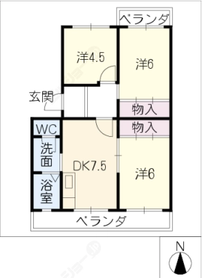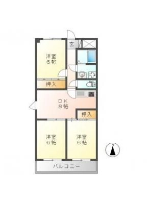 敷 金1ヶ月 / 償 却10割間取り 3DK / 57.33㎡入居日 2026年2月上旬