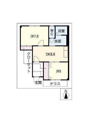 保証金95,000 / 償 却5割間取り 2DK / 51.59入居日 即 可
