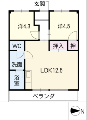 保証金2ヶ月 / 償 却10割間取り 2LDK / 59.10㎡入居日 相 談