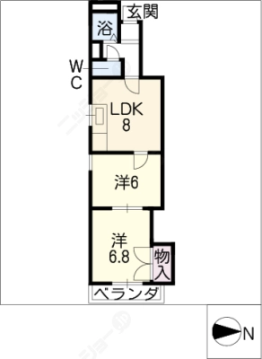 保証金0.5ヶ月 / 礼 金0.5ヶ月間取り 2LDK / 53.97㎡入居日 即 可
