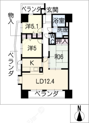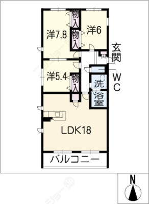 敷 金1.00ヶ月 / 償 却10割間取り 3LDK / 65.41㎡入居日 即 可