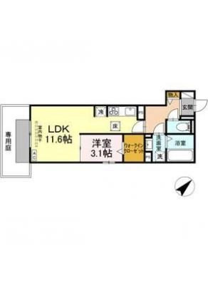 敷 金2ヶ月 / 償 却10割間取り 1LDK / 41.40入居日 即 可