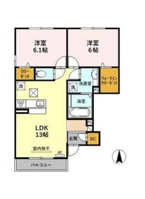 保証金2ヶ月 / 償 却10割間取り 2LDK / 61.88㎡入居日 2026年1月上旬
