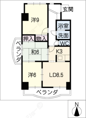 保証金1ヶ月 / 償 却10割間取り 3LDK / 89.58入居日 即 可