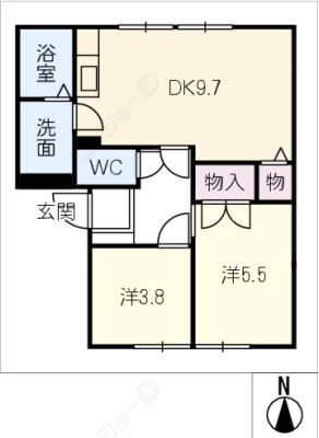 敷 金1.00ヶ月 / 礼 金-----間取り 2DK / 44.55入居日 即 可