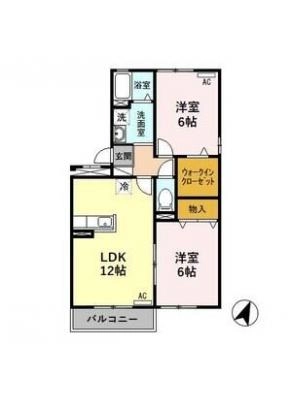 敷 金1ヶ月 / 一時金12.6万間取り 2LDK / 57.30㎡入居日 2026年2月下旬