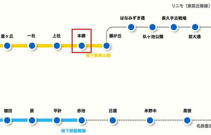 デメリットとしては、地下鉄東山線の一社、上社、本郷、藤が丘の4駅は地上区間となります。