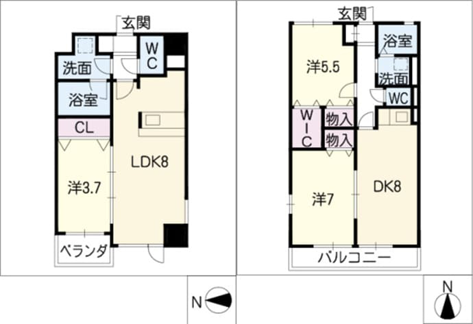収納スペース内にハンガーを掛けるためのパイプがあればCL、パイプがなければ物入・押入です。