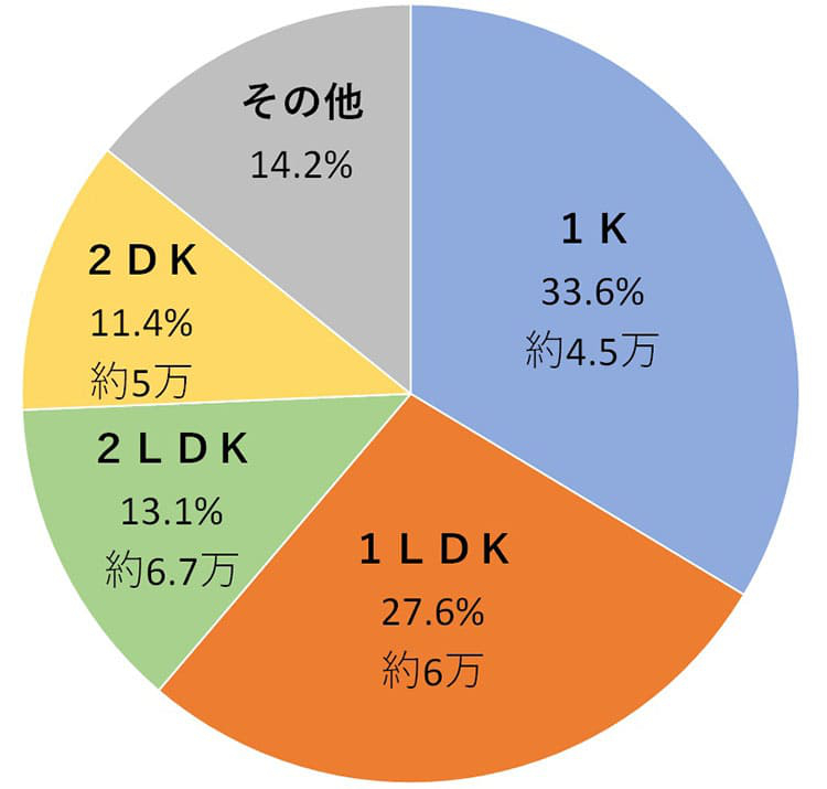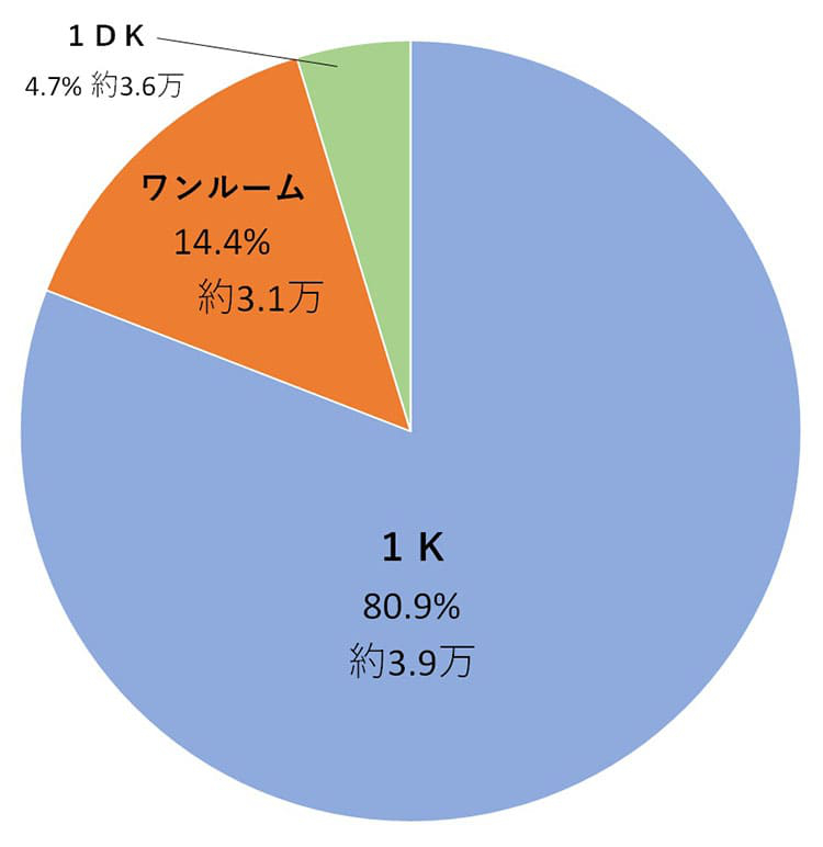 8割の人が1Kを選んでいます。