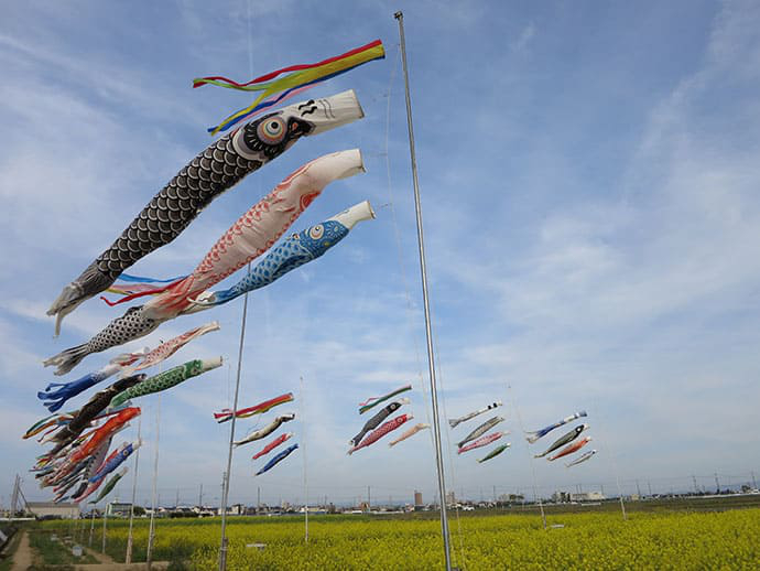 春には、菜の花とこいのぼりが見られます。