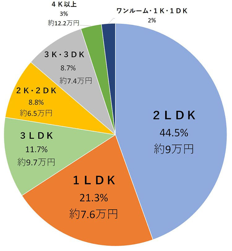 平均家賃は約7.3万円