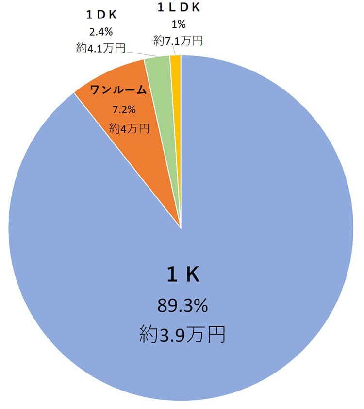 平均家賃は約3.9万円