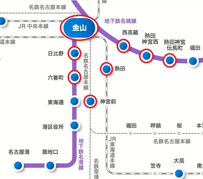 熱田区にある駅は、下記の8駅です。