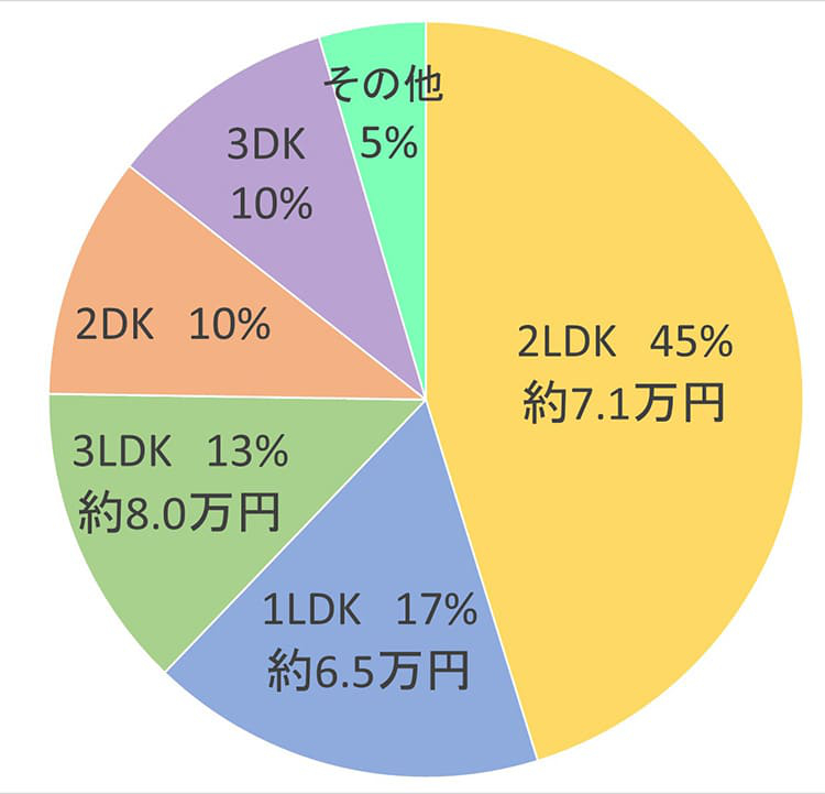 平均家賃は約7.1万円