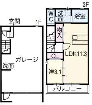 賃貸物件におけるガレージハウスは、1階がガレージのため、主な住居部分は2階以上になるメゾネットタイプとなります。
