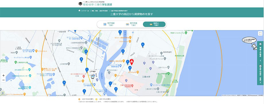 三重大学周辺の物件を地図で見る