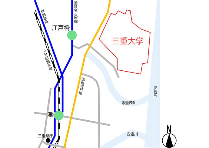 - 三重大学は、近鉄名古屋線「江戸橋駅」が最寄り駅になります。