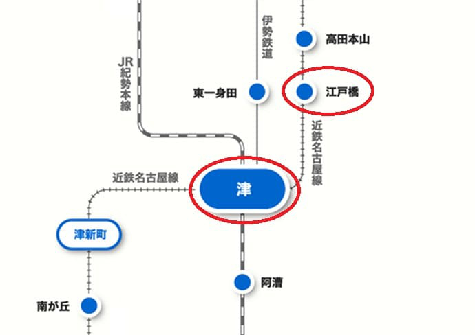 「津駅」は、三重大学の最寄り駅である「江戸橋駅」の隣の駅になります。