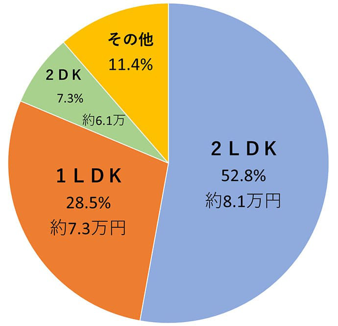 1位:2LDK 52.8% 平均家賃約8.1万円