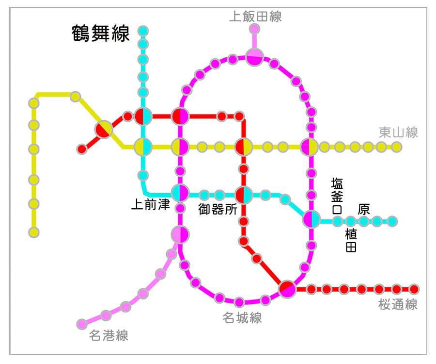 - 鶴舞線は、名古屋市の主要地下鉄の中でも、比較的空いているため、通勤に使う場合も便利です。